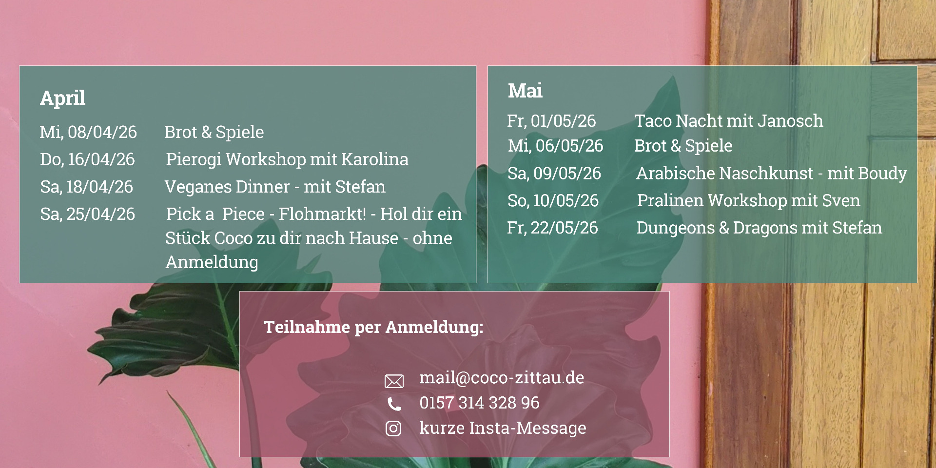 Doch bevor die kleine Genusskapsel Coco Cipollini Mitte 2026 Addio sagt, gibt es in den kommenden Monaten nochmal ein wunderhübsches Programm um die Ohren. Vielleicht habt ihr ja Lust noch einmal dabei zu sein. Die Freude wäre groß.